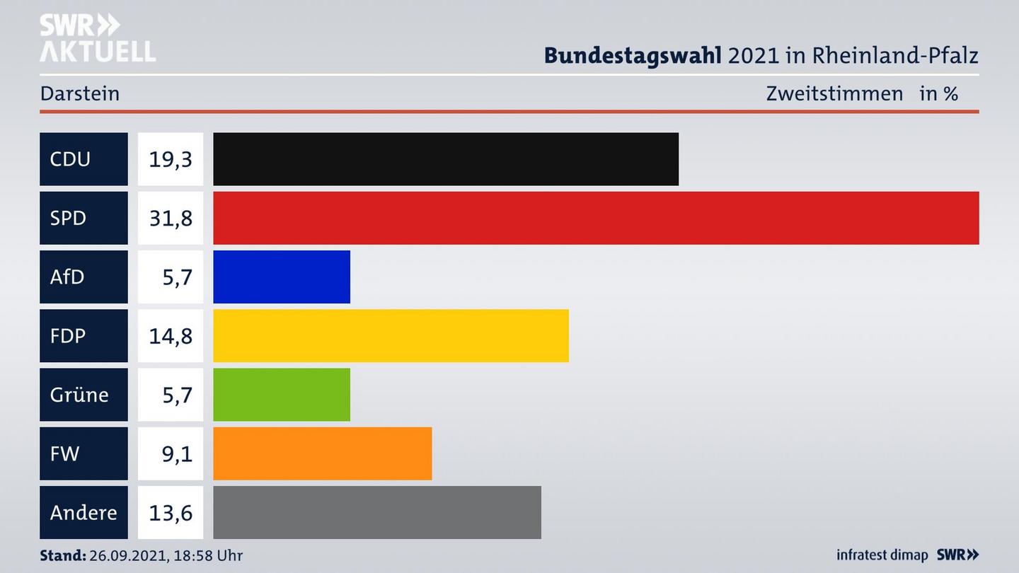 In Orten, die zu einer Verbandsgemeinde gehören, wird das Wahlergebnis in der Regel ohne Briefwähler angezeigt. Die Briefwahl wird zumeist zentral bei der Verbandsgemeinde ausgezählt und kann daher dann nicht separat für die einzelnen Gemeinden ermittelt werden. Möglicherweise enthält dieses Gemeindeergebnis auch Stimmen aus Nachbargemeinden, wenn dort weniger als 50 Wähler ihre Stimme im Wahllokal abgegeben haben.