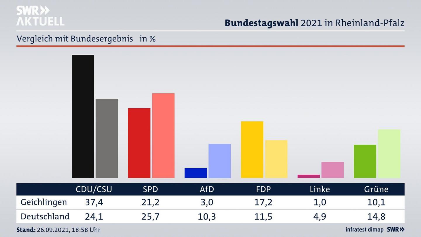 So hat der Ort im Vergleich zum Bundesergebnis gewählt