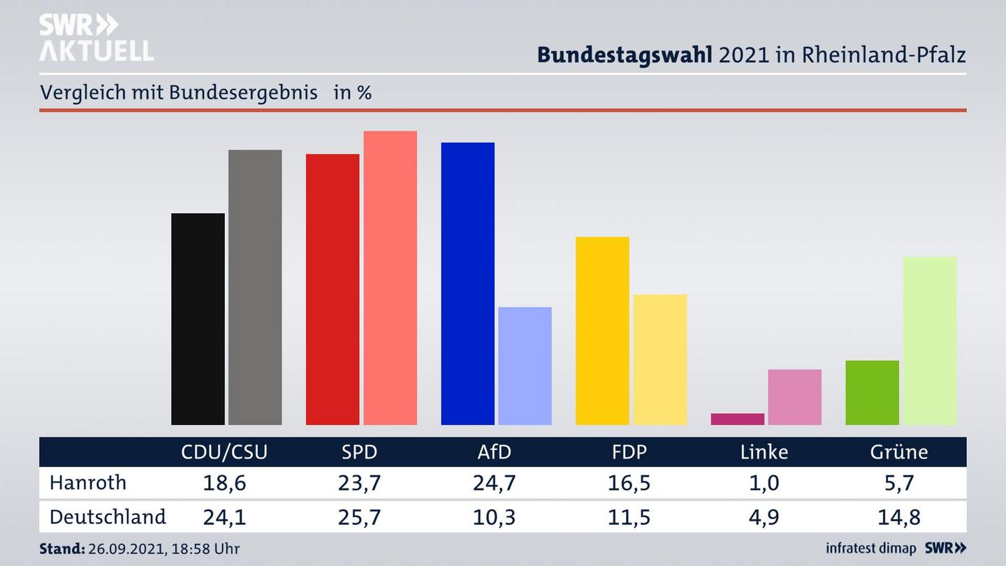 In Orten, die zu einer Verbandsgemeinde gehören, wird das Wahlergebnis in der Regel ohne Briefwähler angezeigt. Die Briefwahl wird zumeist zentral bei der Verbandsgemeinde ausgezählt und kann daher dann nicht separat für die einzelnen Gemeinden ermittelt werden. Möglicherweise enthält dieses Gemeindeergebnis auch Stimmen aus Nachbargemeinden, wenn dort weniger als 50 Wähler ihre Stimme im Wahllokal abgegeben haben.