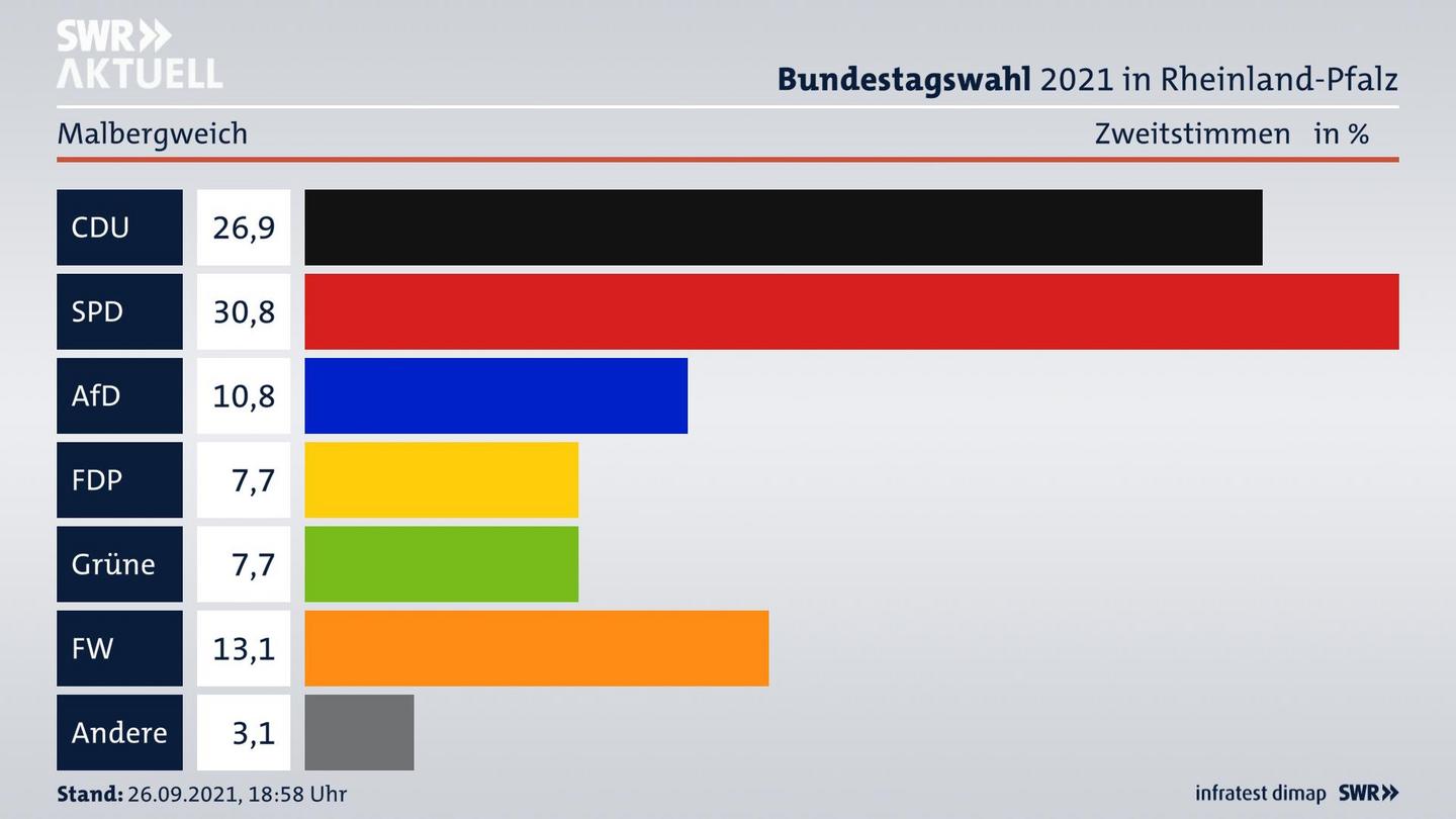 In Orten, die zu einer Verbandsgemeinde gehören, wird das Wahlergebnis in der Regel ohne Briefwähler angezeigt. Die Briefwahl wird zumeist zentral bei der Verbandsgemeinde ausgezählt und kann daher dann nicht separat für die einzelnen Gemeinden ermittelt werden. Möglicherweise enthält dieses Gemeindeergebnis auch Stimmen aus Nachbargemeinden, wenn dort weniger als 50 Wähler ihre Stimme im Wahllokal abgegeben haben.