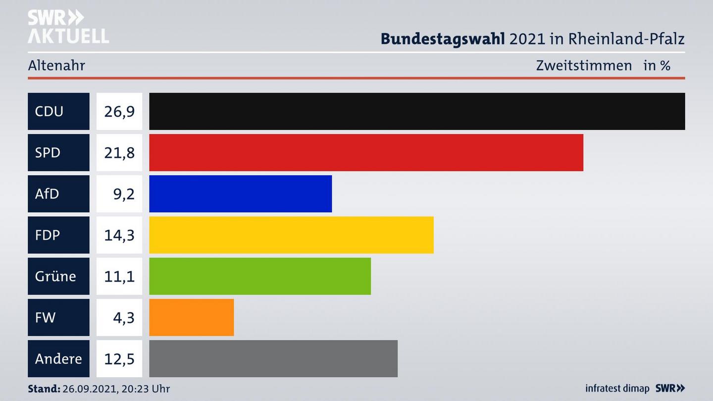 In Orten, die zu einer Verbandsgemeinde gehören, wird das Wahlergebnis in der Regel ohne Briefwähler angezeigt. Die Briefwahl wird zumeist zentral bei der Verbandsgemeinde ausgezählt und kann daher dann nicht separat für die einzelnen Gemeinden ermittelt werden. Möglicherweise enthält dieses Gemeindeergebnis auch Stimmen aus Nachbargemeinden, wenn dort weniger als 50 Wähler ihre Stimme im Wahllokal abgegeben haben.