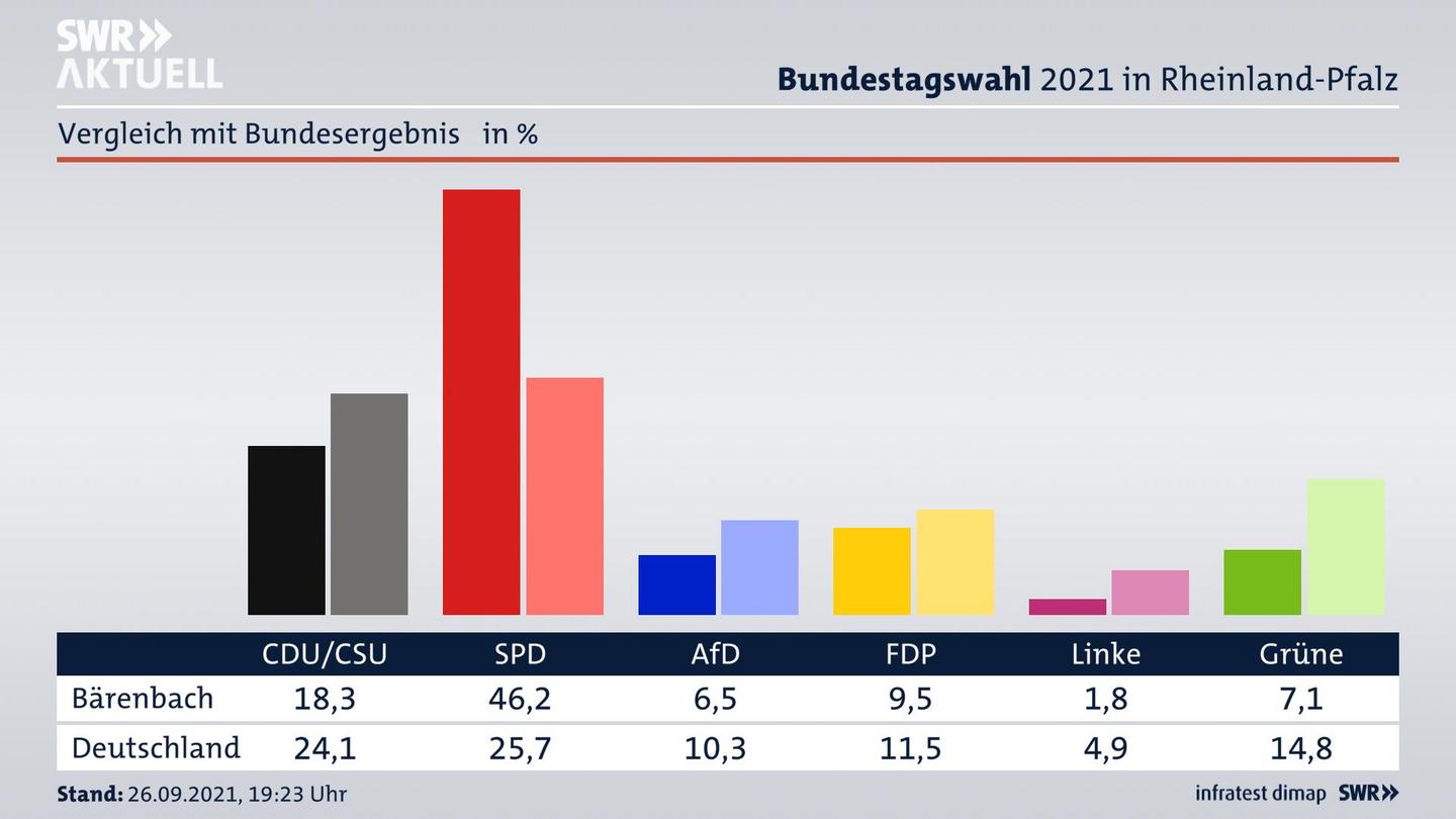 In Orten, die zu einer Verbandsgemeinde gehören, wird das Wahlergebnis in der Regel ohne Briefwähler angezeigt. Die Briefwahl wird zumeist zentral bei der Verbandsgemeinde ausgezählt und kann daher dann nicht separat für die einzelnen Gemeinden ermittelt werden. Möglicherweise enthält dieses Gemeindeergebnis auch Stimmen aus Nachbargemeinden, wenn dort weniger als 50 Wähler ihre Stimme im Wahllokal abgegeben haben.