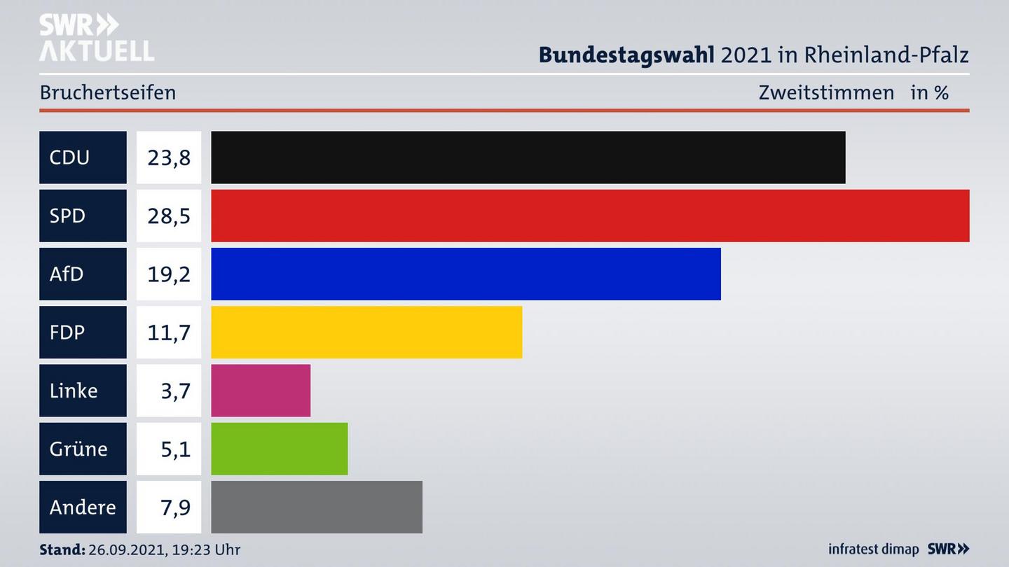 In Orten, die zu einer Verbandsgemeinde gehören, wird das Wahlergebnis in der Regel ohne Briefwähler angezeigt. Die Briefwahl wird zumeist zentral bei der Verbandsgemeinde ausgezählt und kann daher dann nicht separat für die einzelnen Gemeinden ermittelt werden. Möglicherweise enthält dieses Gemeindeergebnis auch Stimmen aus Nachbargemeinden, wenn dort weniger als 50 Wähler ihre Stimme im Wahllokal abgegeben haben.
