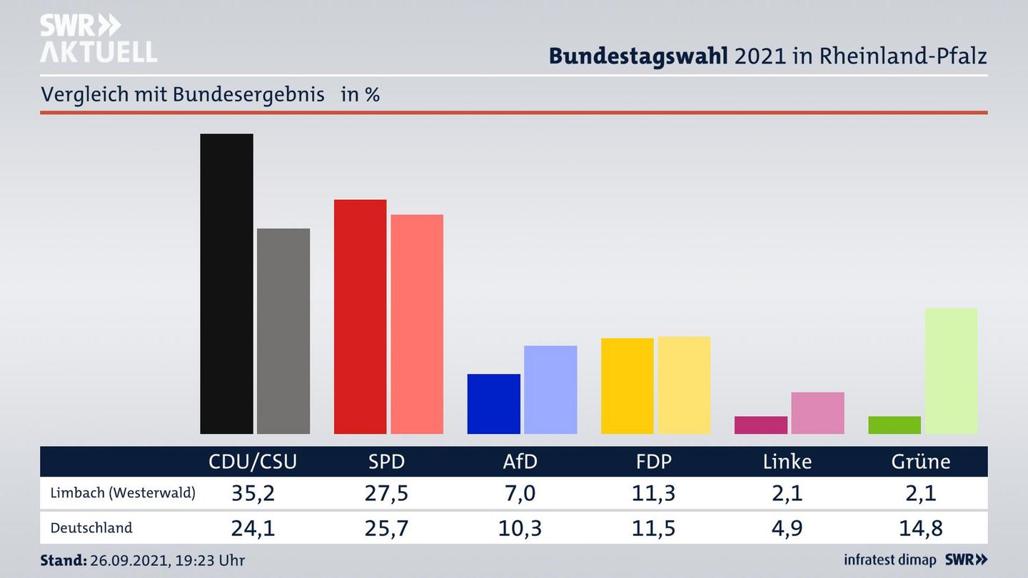 In Orten, die zu einer Verbandsgemeinde gehören, wird das Wahlergebnis in der Regel ohne Briefwähler angezeigt. Die Briefwahl wird zumeist zentral bei der Verbandsgemeinde ausgezählt und kann daher dann nicht separat für die einzelnen Gemeinden ermittelt werden. Möglicherweise enthält dieses Gemeindeergebnis auch Stimmen aus Nachbargemeinden, wenn dort weniger als 50 Wähler ihre Stimme im Wahllokal abgegeben haben.