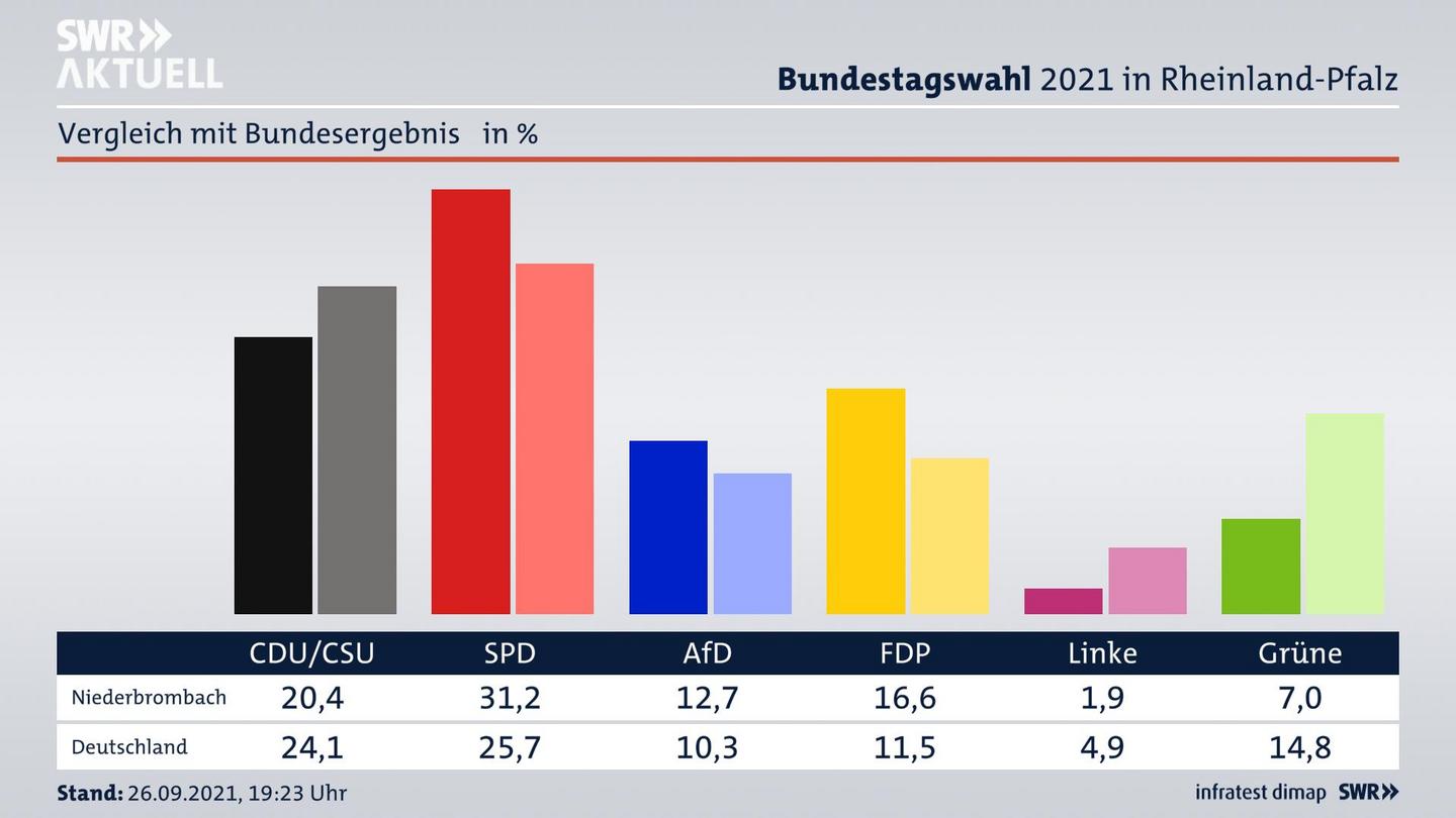 In Orten, die zu einer Verbandsgemeinde gehören, wird das Wahlergebnis in der Regel ohne Briefwähler angezeigt. Die Briefwahl wird zumeist zentral bei der Verbandsgemeinde ausgezählt und kann daher dann nicht separat für die einzelnen Gemeinden ermittelt werden. Möglicherweise enthält dieses Gemeindeergebnis auch Stimmen aus Nachbargemeinden, wenn dort weniger als 50 Wähler ihre Stimme im Wahllokal abgegeben haben.