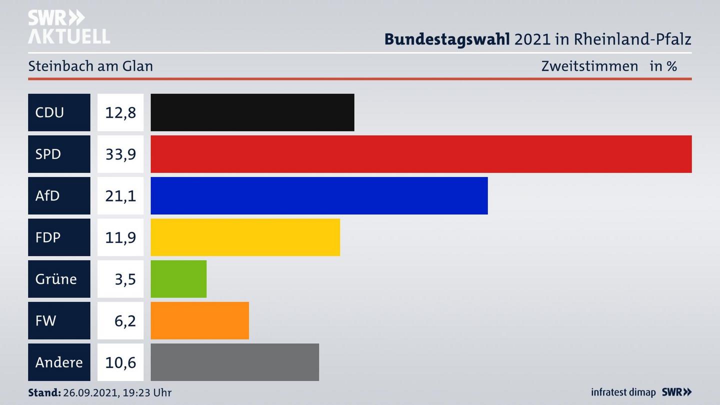 In Orten, die zu einer Verbandsgemeinde gehören, wird das Wahlergebnis in der Regel ohne Briefwähler angezeigt. Die Briefwahl wird zumeist zentral bei der Verbandsgemeinde ausgezählt und kann daher dann nicht separat für die einzelnen Gemeinden ermittelt werden. Möglicherweise enthält dieses Gemeindeergebnis auch Stimmen aus Nachbargemeinden, wenn dort weniger als 50 Wähler ihre Stimme im Wahllokal abgegeben haben.